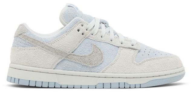 The Women's Dunk Low 'Photon Dust Armory Blue' presents a fresh style with its fashionable design. This Dunk features a shaggy suede upper, providing a unique texture and look to this low-top. Light grey accents on the forefoot and heel overlay complement the blue base, delivering a balanced color scheme. The signature Swoosh and back tab are a slightly darker shade of grey, providing some tonal differentiation. Underneath, a durable rubber cupsole, complete with white sidewalls and a light blue rubber outsole, ensures long-lasting wear. Step up your casual game with these affordable and stylish kicks.
